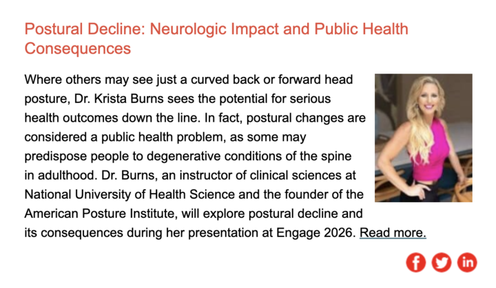 To book Dr. Krista to speak, please send an inquiry to DrKrista@AmericanPostureInstitute.com